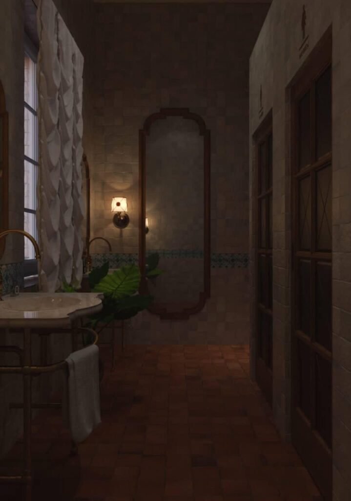 Reflections glide softly across every surface, transforming the royal bath into a sanctuary of calm.